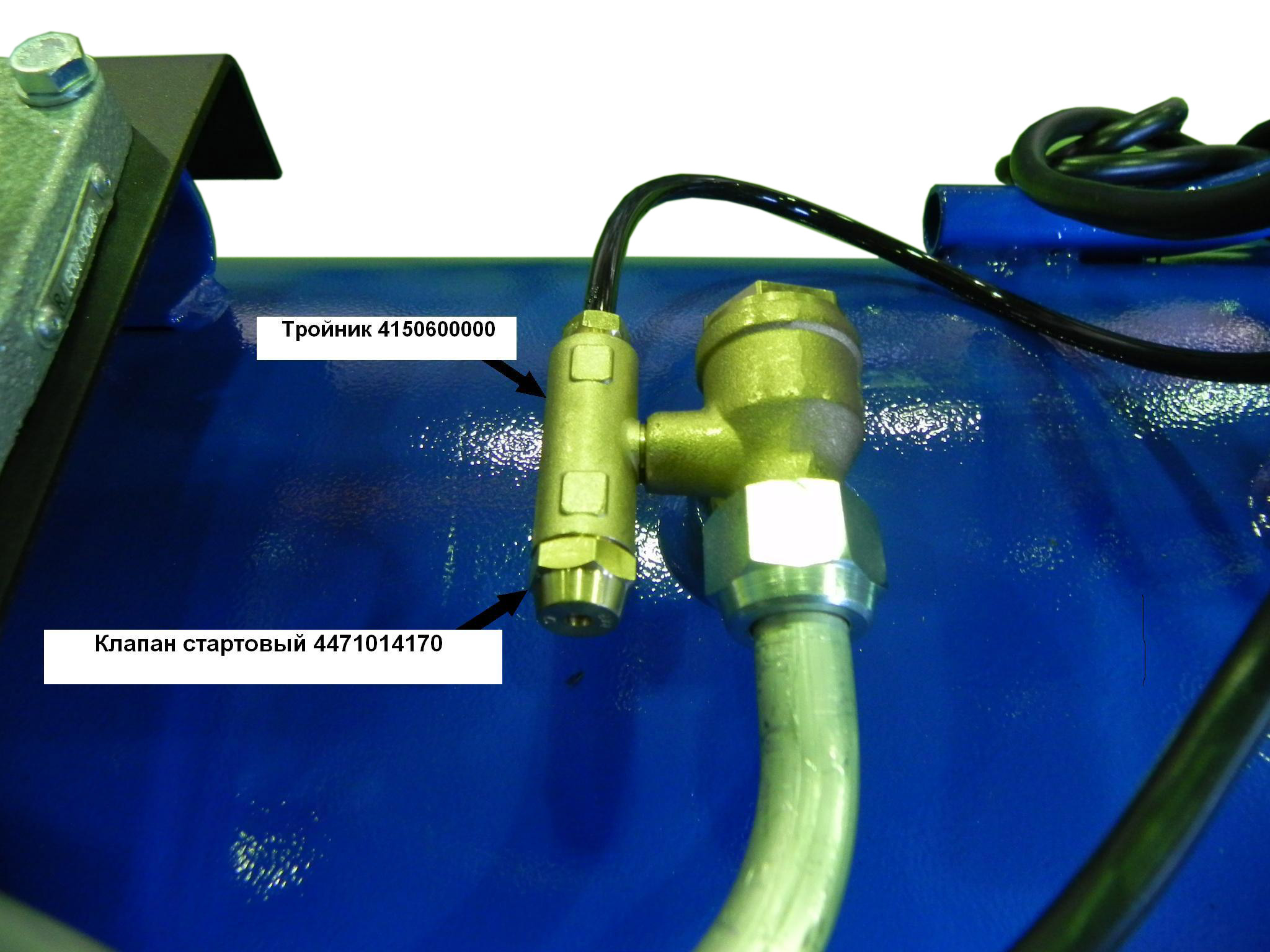 После запуска двигателя давление в воздухопроводе нарастает и при его достижении величины 1,7-2,2 бар стартовый клапан закрывается. При остановке компрессора, когда компрессор работает в автоматическом режиме или, когда компрессор выключается выключателем на реле давления (маностате, прессостате), через выпускной клапан, расположенный на реле давления (маностате, прессостате), происходит сброс воздуха с нагнетательного воздухопровода, стартовый клапан открывается. При включении компрессора цикл повторяется.