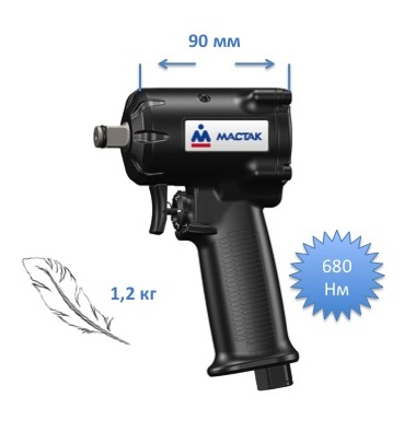 Новинка: Пневматический гайковерт Мастак, 680 Нм на 1/2- укороченный вариант.