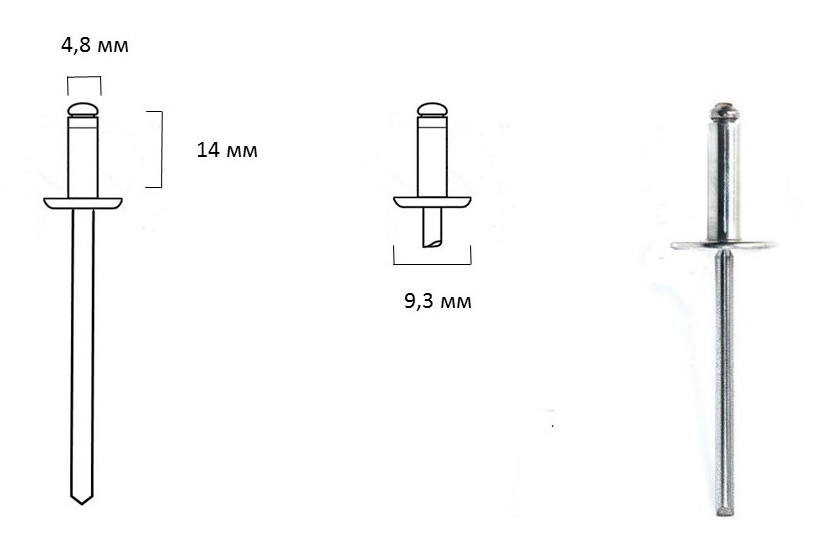 • Диаметр заклёпки: 4.8 мм;