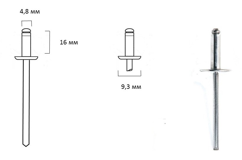 • Диаметр заклёпки: 4.8 мм;